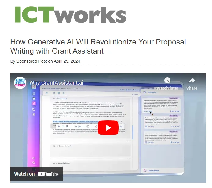 At Grant Assistant, we've been working hard to revolutionize the way international development organizations approach proposal writing. Our AI-powered platform has been making waves in the industry, and we couldn't be more thrilled about the recognition and positive feedback we've been receiving. In this news roundup, we'll highlight some of Grant Assistant's exciting recent coverage.